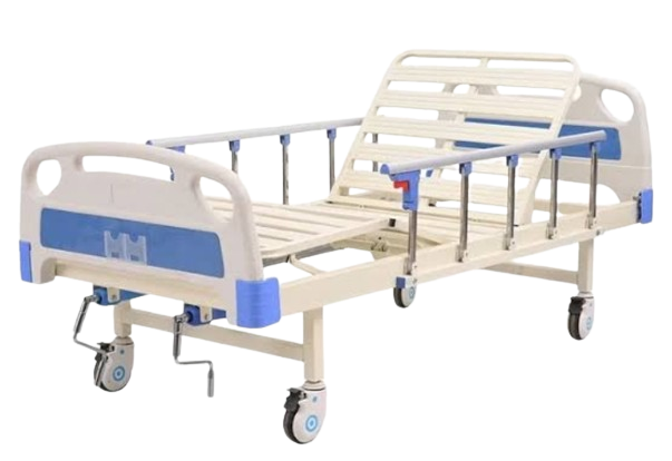2 Crank Manual Hospital bed (2-function, 2-Cranks Manual Bed, with IV pole, siderail, Leg section and backrest Adjustable) ABS board foot and head board.
