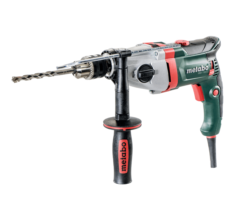 Vario-Tacho-Constamatic (VTC)-Full Wave Electronics for work with materials requiring customised speeds, which remain constant under load. Thumbwheel for Speed Preselection. Selectable “impuls” mode for removal of stubborn screws and for spot-drilling on smooth surfaces. Robust die cast aluminium gear housing for optimum heat dissipation and long service life. Rotating carbon brush bridge for maximum performance even in anti-clockwise operation, e.g. for the removal of stubborn screws. Metabo Marathon-motor with dust protection for long service life. Metabo S-automatic safety clutch: mechanical decoupling of the drive for safe working should the tool stop unexpectedly. Forward and reverse rotation. Spindle with hexagonal recess for screwdriver bits for working without chuck. Overload protection: protects the motor from overheating. Restart protection: prevents unintentional start-up after power supply interruption. Cable-protecting ball joint for optimal freedom of motion when working. Wear Indication for Carbon Brush.