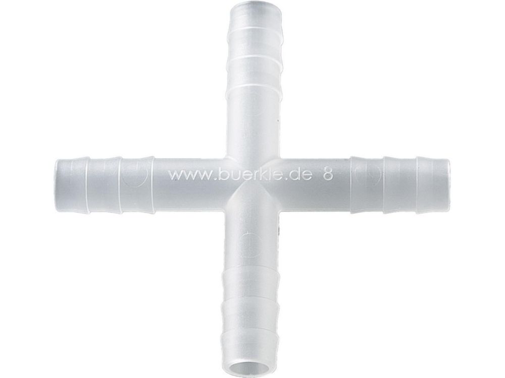 The Bürkle Cross Connector PVDF is designed for use with cylindrical tubes having an outer diameter of Ø 7-9 mm. Made from durable PVDF (Polyvinylidene Fluoride), this connector ensures a secure and leak-proof connection for laboratory fluid handling applications. The pack contains 10 connectors, making it a cost-effective solution for high-volume lab setups that require multiple connections.