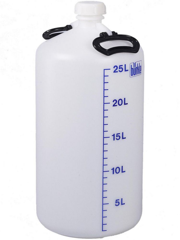 The Bürkle Storage Bottle 25 Liters HDPE is a practical choice for secure and reliable liquid handling.