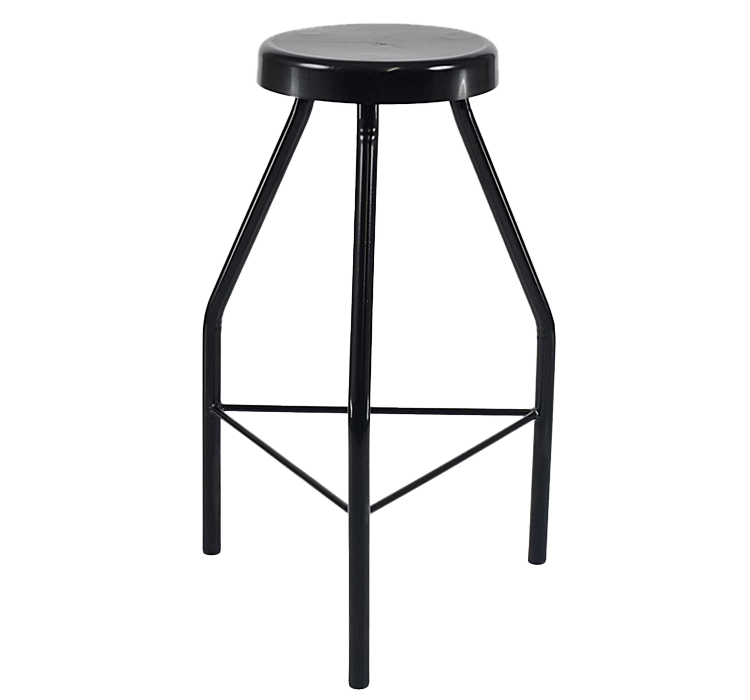 Seat made from polypropylene 280mm diameter. Frame is made from 25mm round tubing cold rolled steel with 1.6mm wall thickness, 10mm round bar support between legs.