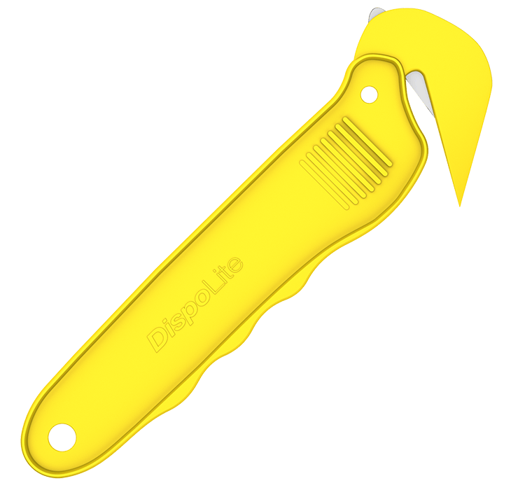 High performance lightweight disposable safety knife with built in tape cutter and ergonomic handle. Ideal for cutting shrink wrapping, strapping and box opening. Suitable safety belt cutter for the emergency services.