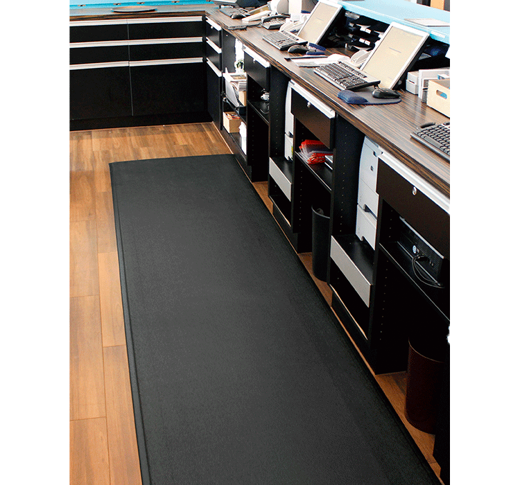 Exceptional Anti-Fatigue properties with dual fused layer construction for superior comfort and durability. Tough PVC foam textured top surface for excellent resilience against wear and tear. Low density under layer provides effective underfoot cushioning. Ideal for demanding locations. Tapered edges reduce trip hazards. 0,6m x 0,9m