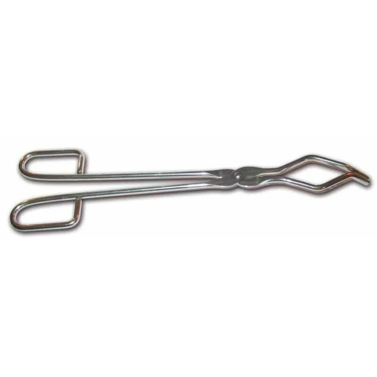 Nickel-plated steel. Long and rigid for furnace use. With large handles and serrated tips. Total length: 18 ½”.