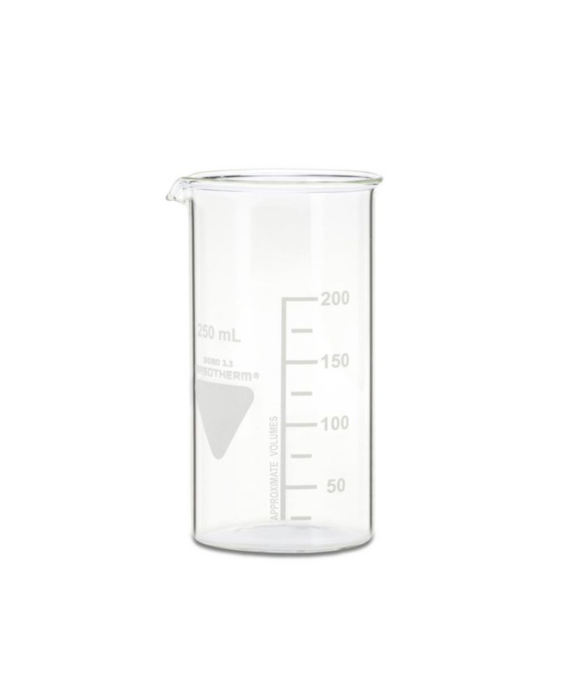 The Scherf Beakers 250 ml, High Form, Boro 3.3, With Division and Spout, Pack of 10, are ideal for precise liquid measurements and easy pouring in laboratory settings. Made from high-quality Boro 3.3 borosilicate glass, these beakers offer excellent thermal resistance, chemical durability, and mechanical strength. The divisions on the beakers allow for accurate volume measurements, while the spout enables smooth pouring without spills.