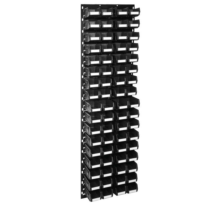 500 x 1800 black panel complete with 68 black Linbin ® storage bins